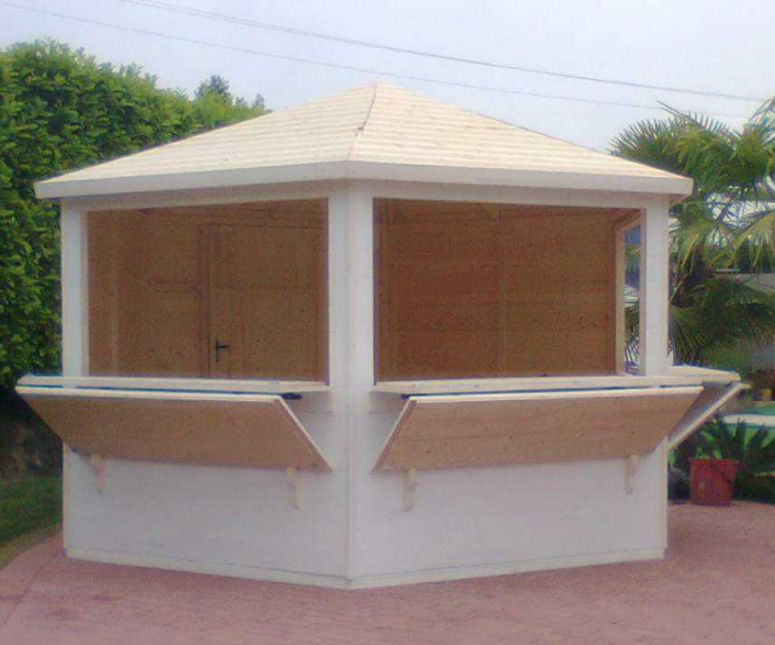 Chiosco realizzato interamente in tronchi di abete trattato, struttura ideale solo per postazioni fisse,nelle misure e colori a scelta.