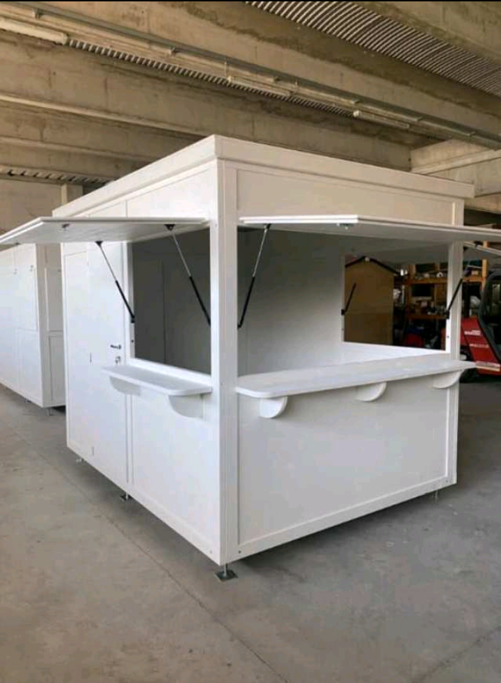 Chiosco ideale per street food, mercatini, Fiere, facile e veloce nel montaggio/smontaggio, completo di pedana,3 ribalte , misure a scelta.