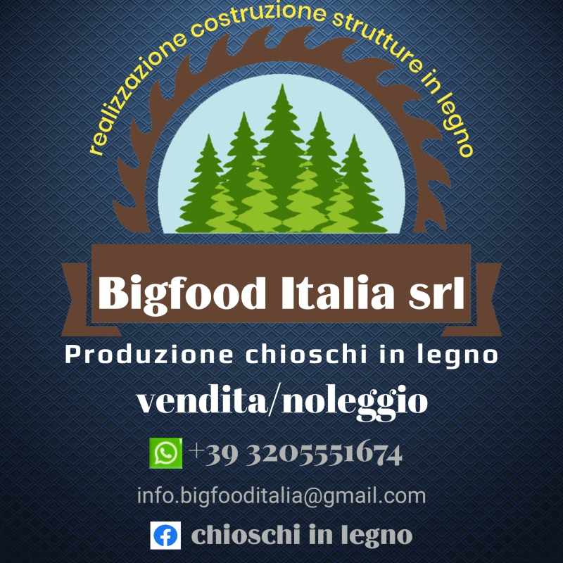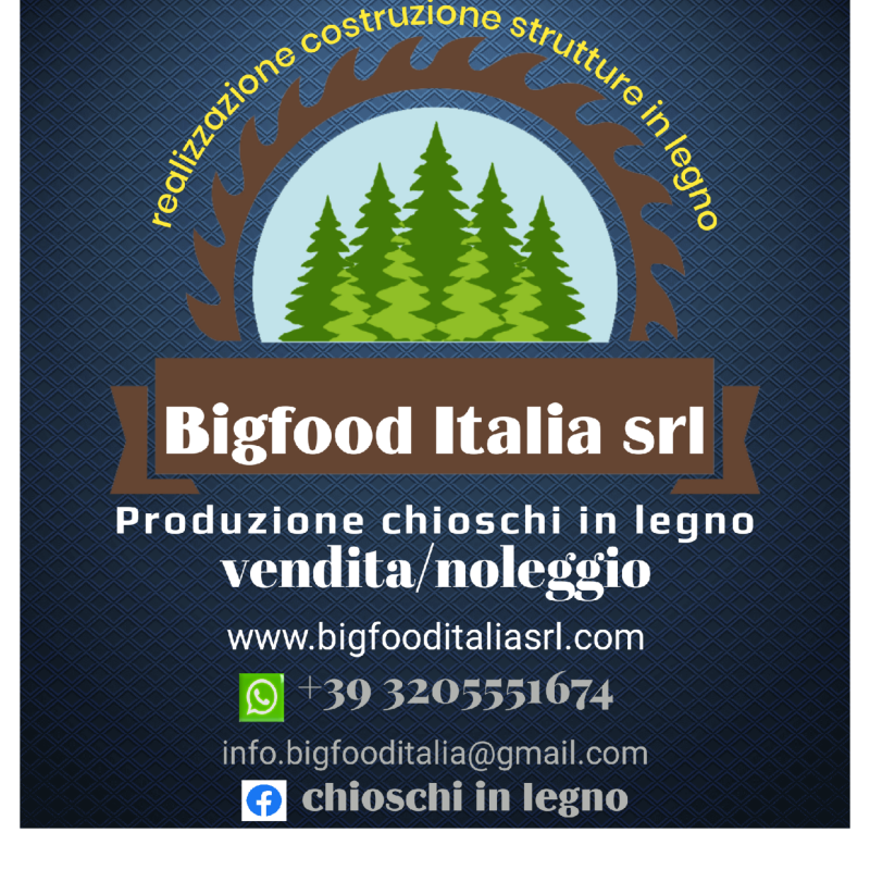 Bigfooditalia srl è un'azienda giovane e dinamica che ha saputo affrontare le screscenti sfide di mercato nel settore dei chioschi in legno/coperture/verande/tetti in legno/lavorazione legno in genere. Fondata nel 2022 dal Sig. (M.Rolando) In Romania nel distretto di "Neamt" con la precisa scelta del territorio per l'eccellente scelta dei materiali (legnami) con l'obiettivo di offrire soluzioni innovative con legno di alta qualità a prezzi unici e competitivi .Siamo presenti in Italia Avezzano (AQ) per soddisfare le esigenze di mercato locale,operiamo con un'ampia gamma di prodotti e con un eccellente scelta dei materiali e trattamenti specializzati, ci impegniamo a garantire la massima soddisfazione dei nostri clienti con prezzi unici sul mercato.Per ogni struttura realizzata garantiamo il montaggio con i nostri tecnici/artigiani.